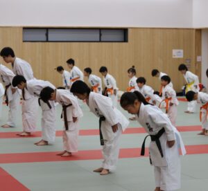 武道の基本は「礼」に始まり「礼」に終わります。道場に一歩足を踏み入れた瞬間から、背筋を正し、相手の目を見て挨拶を行う。